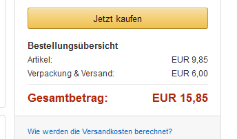 Karl-Heinz M. schrieb: > Ich hab da mal 2 Bücher im Visier, s. Anhang. Wenn ich die nacheinander > in den EK lege und mich dann durchs Checkout hangle, hab ich 2mal > Versandkosten drin, s. Anhang. Wo liegt mein Fehler? Das ist kein Fehler. Ich habe gerade nachgesehen, so handhaben es viele Händler. Ich habe noch im Kopf, dass man bei den Händler auf Details klickt und dann die konkrete Aufstellung sieht. Jetzt gerade habe ich nur die Standardliste von Amazon gesehen, wo in meinen Augen da nicht eindeutig ist. Aber ja, der will tatsächlich dann die 6 EUR für den Versand sehen.