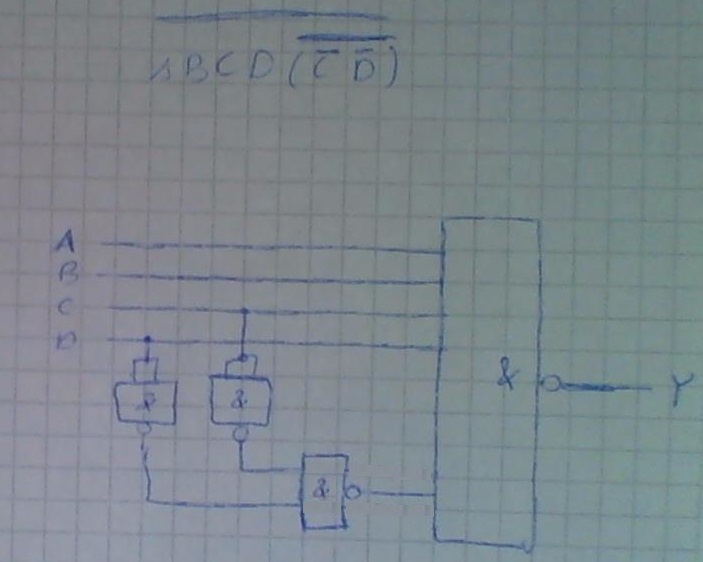 Andere Frage dazu um das ganze zu vereinfachen. Lässt sich diese NAND-Funktion noch weiter vereinfachen? * bedeutet negiert (A* AND B* AND C* AND D*)* so dass ich am ende A AND* B AND* C AND* D stehen habe, oder wäre die Form vorher schon die Lösung? Danke.