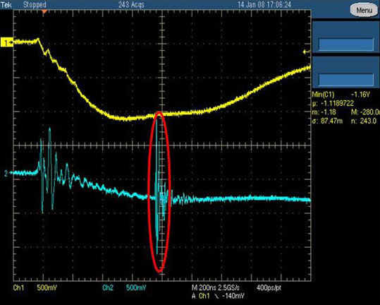 Heyo guys, ich stehe grade vor einem Problem und komme da nicht weiter. Ich plane ein Setup mit dem ich Teilentladungen detektieren moechte. Das System besteht aus einem AC HV-Generator up to 100kV rms und einer Messzelle mit Oil. Es ist ein komerzielles Geraet. Siehe: http://www.maceyselectrical.com.au/hv_diagnostics_ba100_dielectric_oil_tester.htm So, nun ist das System nur in der lage Breakdown Voltage durch langsamen Anstieg der Spannung zu messen (was ich spaeter ebenfalls brauche), bevor allergings ein Breakdown (discharge) passiert, partial discharges passieren bevor. Das Geraet ist in der lage eine eingestellte Spannung zu halten. Es gibt verschiedene Ansaetze um teilentladungen zu detektieren und auch versch. fertige Loesungen aber das o.g. Geraet steht uns zur Verfuegung. Ich moechte ein Oscilloscope verwenden um genau und relativ simple zu sehen bei welcher Spannung/Phase eine Entladung passiert und in welcher staerke. Siehe als Bsp. den Anhang. Mein Ziel ist es, duch ahaltendene Teilentladungen eine Veringerung des beginns der Teilentladung zu sehen. So, haette ich nun zb. 230V als Spannung, waere das kein problem, ich wuerde einfach die Klemmspannung und den Strom durch einen Serienwiderstand messen. Bei 100kV rms jedoch sieht das anders aus. Jemand tipps um 100kV und Strom mit einem Oszi zu observieren? Merci :) Alex