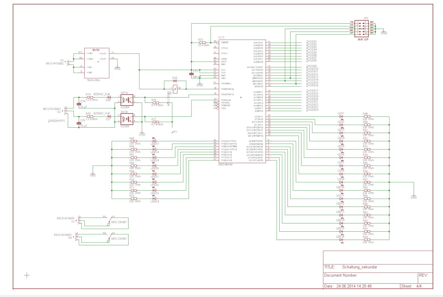 Hallo Dietrich > Noch was anderes: woher kommen die '+5V' an R76, R77? Es sieht so aus, > als wenn die 'in der Luft' hängen. Nein die R76 R77 sind mit 5V verbunden brauche ich noch einen Transistor für mein Relais??? sind die Low Current LED hell genug??? haben sie erfahrung mit einer bestimmten LED, wo sioe safen, die könnte man nehzmmen, dann kann ich auch Enrgie sparen. Gruß John