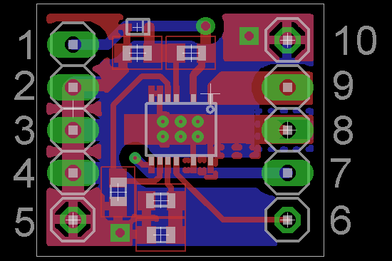 Guten Abend zusammen, ich bin noch recht unerfahren was Schaltregler angeht, muss aber jetzt eine möglichst effiziente Spannungsversorgung für einen uC + Schnittstellen für mein Board entwickeln. Aus diesem Grund möchte ich vorab erstmal ein Testboard machen, mitdem ich 2 ausgesuchte Schaltregler bei verschiedenen Schaltfrequenzen, Spulen und Kondensatoren mit verschiedenen Strömen testen möchte. Um Geld zu sparen habe ich mir gedacht ich mache den Schaltregler steckbar und die Spule + Kondensatoren kommen auf das andere Board. Mich würde zunächst interessieren was die Mehrheit denkt, ob ich mithilfe dieses Boards vertrauenswürdige Messwerte bekommen kann. Untersucht werden soll wie effizient der Regler arbeitet. Die Testströme bewegen sich zwischen 10 und 500 mA und die Schaltfrequenzen der Regler zwischen 50 - 250 KHz. Eingangsspannung zwischen 13V - 36V. Der abgebildete Schaltregler ist ein LTC3630. Die gestrichelten Polynomränder sind von Cutout Polynomen, die werden nicht miterstellt. Nun zum Board mit dem Regler drauf: Pin 1: Eingangsspannung Pin 2: GND andem nur der Eingangskondensator hängt Pin 3: GND der Eingangsspannung Pin 4: GND für die Ausgangsspannung Pin 5: GND für Oszi Pin 6: Schaltfrequenzausgabe Pin 7: feedback Eingang Pin 8: GND an dem nur der Ausgangskondensator hängt Pin 9: Ausgang zur Spule Pin 10: GND für Oszi Gruß