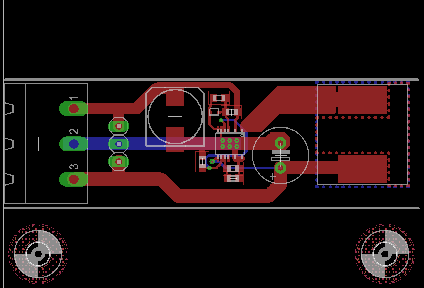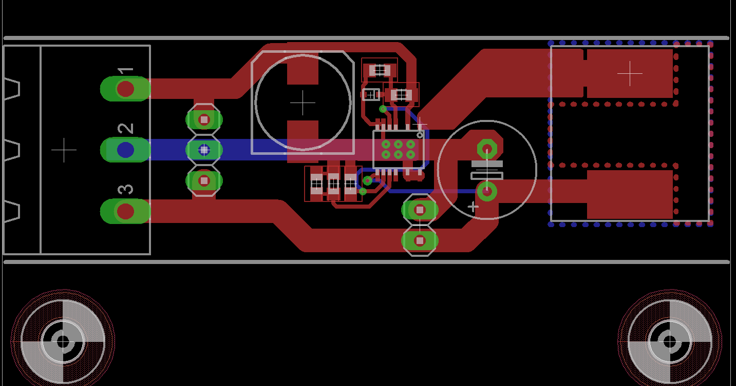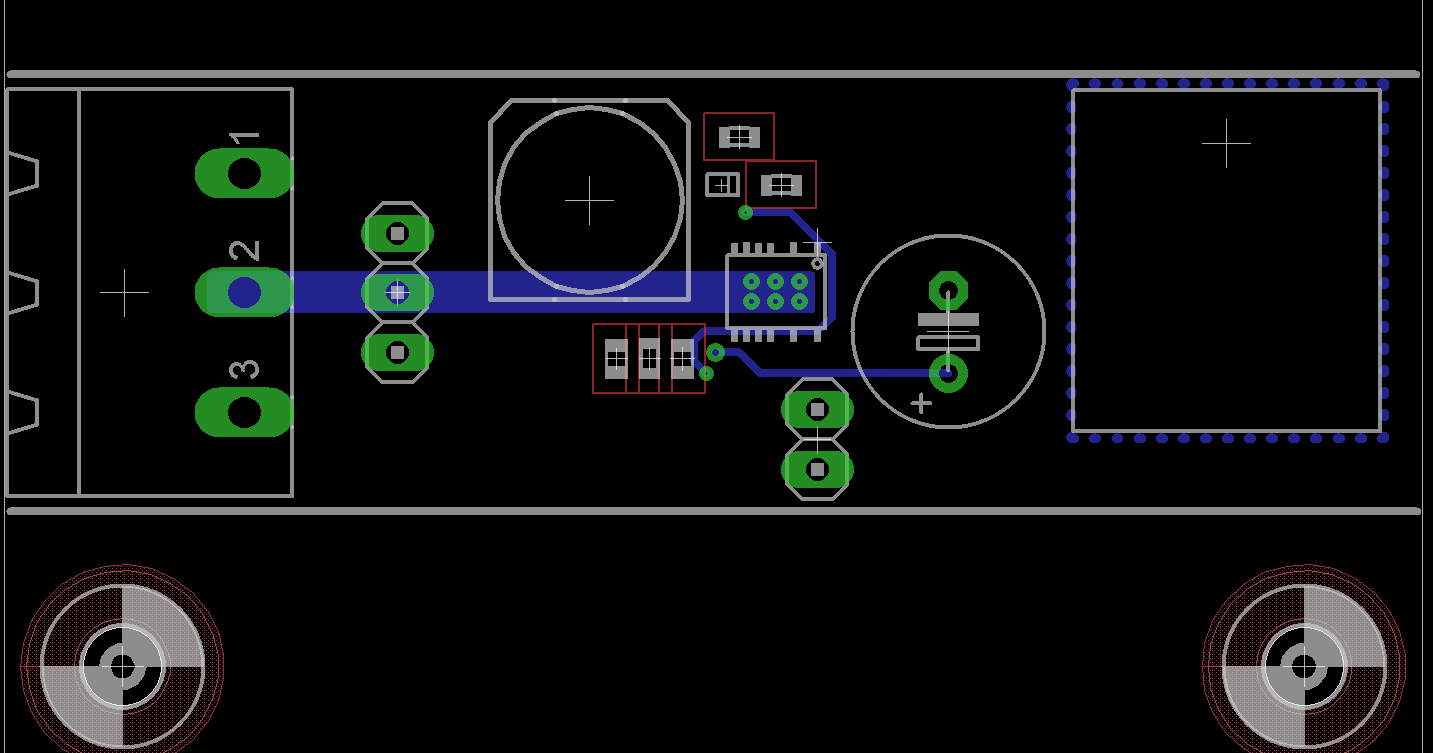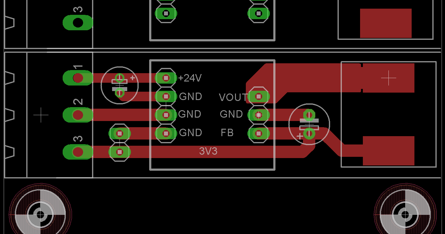 so im Anhang ist mein überarbeitetes Design mit einem Schaltregler. Findet jemand einen groben Fehler ? HildeK schrieb: > Und wenn du Regler-ICs mit exposed Pad verwenden willst und von Hand > löten musst, dann nimm nur eine möglichst große Via unter dem Package ok, meine überlegung war nun das Pad länger als das Gehäuse zu machen, so ca 1 mm überstehen zu lassen um da mit dem Lötkolben ran zu kommen. Dürfte für einen Prototypen doch nichts aus machen ? Macht das einen großen Unterschied aus, wenn ich anstatt den 6 Vias nur eine mit ca 1.1mm Bohrdurchmesser nehme ? Die würde gerade so reinpassen. Gruß