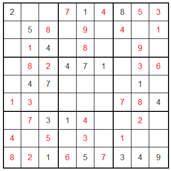 Markus Müller schrieb: > Dieter hat recht... > Ich habe die Zahlen mal alle manuell in ein Sudocu Programm eingegeben > und dann die Hilfs-Funktion anzeigen lassen. Der TE hat ja die Lösung, will sie aber zwecks Erfolgserlebenis selbst drauf kommen.