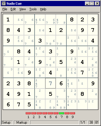 Hm, in dem Block unten Mitte existieren für mich drei mögliche Positionen für die 7, auch durch die fehlenden horizontalen Zahlen konnte ich nichts ausschließen ?