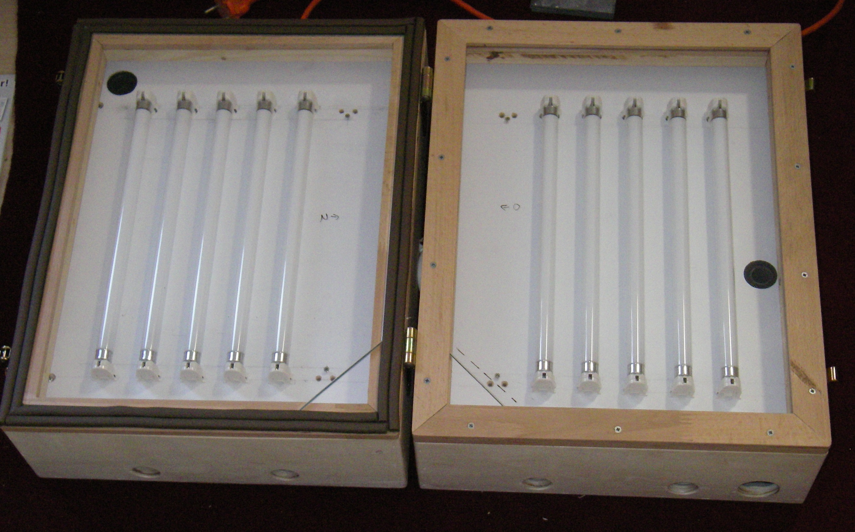 Hi Rudi, Hübsches Kistchen hast Du da gebaut. Jetzt mach noch ein schönes kreisrundes Loch an der Seite hinein und setze dort so ein UV-Filter ein: http://www.ebay.de/sch/Foto-Camcorder-/625/i.html?_from=R40&_nkw=uv+filter Und davor einen Schieber, um das Fenster schließen zu können und die Filterscheibe zu schützen. Ob alle Röhren brennen, kannst Du dann völlig gefahrlos bei Bedarf einfach mit einem "Blick durchs Fenster" feststellen. Minimaler Aufwand, minimale Kosten, minimale Gefahr. Ich bin jetzt auch weg von diesem Fenster, weil die Glotze wartet. Schönen Fussballabend!