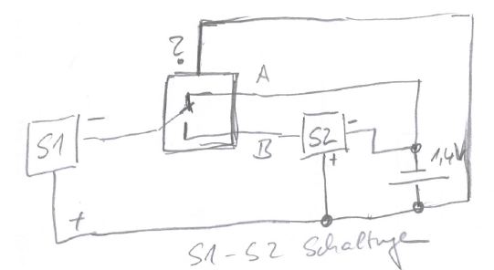 Hallo nochmal, Wenn keine Spannungsunterschiede sind, muß man nicht umschalten. ## Richtig, ein kleiner Formulierungsfehler... ## Er sollte nur einmal Schalten, sobald eine Steuerspannung anliegt und den Kontakt A halten. Wenn Steuerspannung weg, zurück fallen auf B. Ich möchte mit dem Schalten, zwei Schaltungen voneinander trennen. Wenn A Kontakt geschaltet wird, ist die Schatung an B stromlos, da die Masse fehlt. Wenn A oder B geschaltet, liegen 1,4 Volt mit ca 0,5 mA an den Kontakten. Die Steuerspannung ist ebenfalls 1,4 Volt und 0,5 mA. Es gibt auch gegen Fremdfelder abgeschirmte Relais. ...ja aber ich brauche eine sehr kleine Baugröße. Hätten Sie einen Vorschlag? Gruß und Danke für die schnellen Antworten