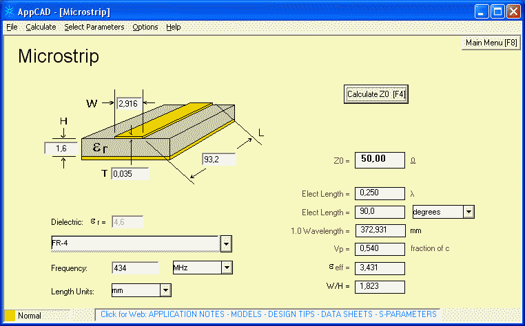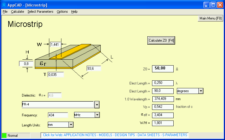 Unter Windows XP läuft Appcad noch. Hier einfach mal ausprobiert zwei Lambda/4 Leitungen im 70cm-Band auf FR4-Epoxid, mit 1,6mm und 0,8mm Dicke. Bei einem Millimeter Leitungslänge ist das natürlich völlig egal.
