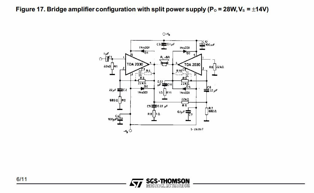 Es ist ja auch gar kein TDA2030 in dem Ding drin, sondern ein PA2030. (Ich sehe gerade, dass es dort 2x IC 301 gibt ...) Und das sind bereits Brückenendstufen. Gruß Jobst