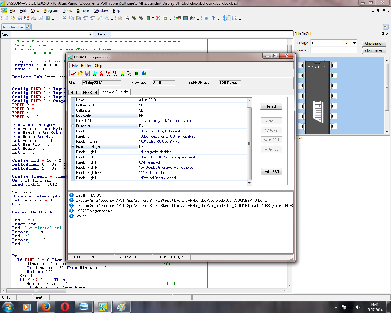 Simon R. schrieb: > Was ist kla987? Wieso steht dort int.? Vermutlich, weil das noch nicht geändert wurde. Genau an der Stelle musst du auf "externer Quarz" ändern. Wie das gemacht wird, verrät dir dein Handbuch zu BASCOM. Und bitte nicht "externer Quarz" und "externer Oszillator" verwechseln. Sonst sperrst du dich aus.