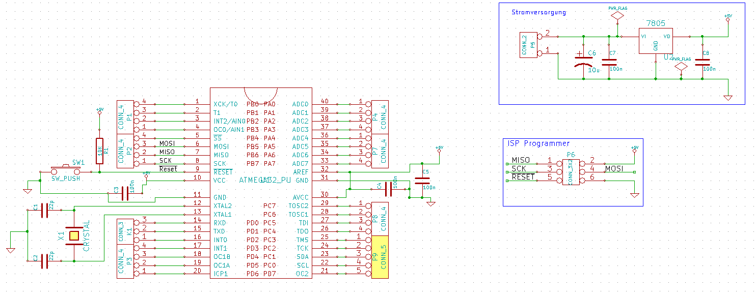 Es handelt sich dabei um eine einfache Grundschaltung von Atmega32. Das Projekt habe ich in KiCad gemacht. Der ERC Test war fehlerfrei. PS: Kann mir jemand sagen, wie ich der Fehler beheben kann.