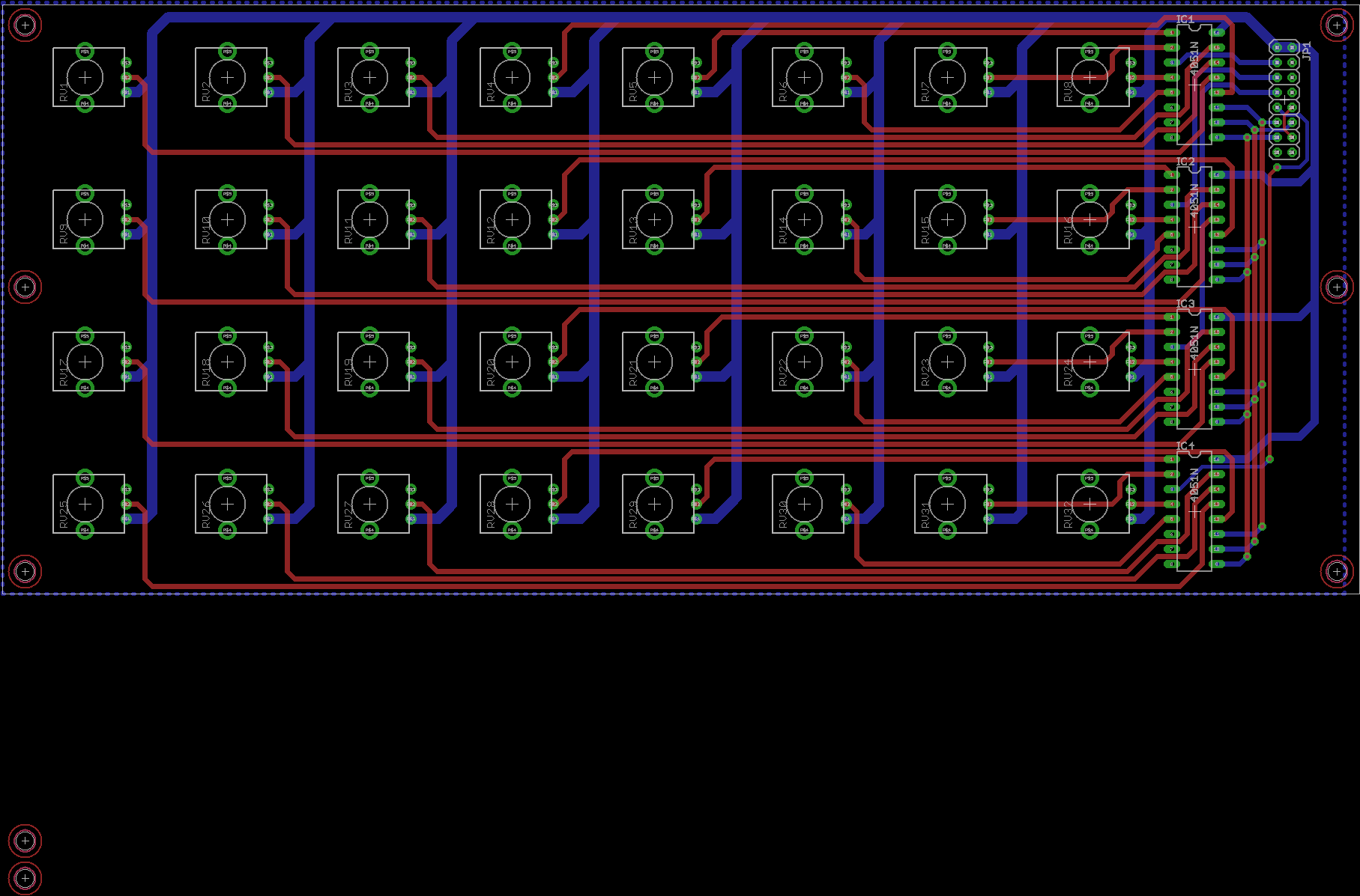 Hallo, Ich habe nun mein Frontboard für den Synthesizer geroutet, welches aus 32 Potentiometern und 4 x CD4051 für das Multiplexen besteht. Die A,B,C Eingänge der CD4051 sind alle zusammengeschaltet und gehen auf die Flachbandkabelbuchse. Die 4 Ausgänge gehen auch an die Buchse. Die 4 Ausgänge gehen dann an einen ADC und die 3 select pins an den uC. Die Belegung ist: VCC VCC OUTA GND OUTB GND OUTC GND OUTD GND A B C GND GND GND Bottom ist eine große Massefläche. VCC ist i.d.F. 3.3V. Ich habe 100nF an jedem CD4051 (huckepack). Die Potis sind 50K Linear. Das sollte so funktionieren? Ich wollte mich vergewissern, bevor ich die Platine nun herstellen lasse. Oder sollen zwischen Poti-Mittelpin und GND noch mal 100nF?