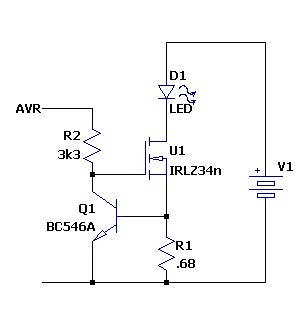 Hallo, ich möchte für ein Stroboskop mehrere LEDs über ein Mosfet schalten. Als Leuchtmittel verwende ich 5 parallel geschaltete 30W-LEDs, die jeweils etwa 32V Versorgungsspannung benötigen. Durch jede LED fließt ca. 1A. Ansteuern möchte ich das ganze durch einen AVR; ich habe mal in der Mosfet-Übersicht geschaut und den IRLZ34N gefunden. Da er ein Logic-Level-Mosfet ist, dürfte ich ihn direkt an einen Pin des AVRs anschließen können, oder? Kann ich die Schaltung (s. Anhang) so funktionstüchtig aufbauen? Ist es für diesen Zweck überhaupt der richtige Mosfet? VG Missura