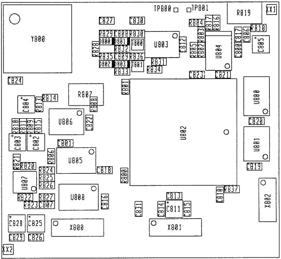 Hier ein Schaltplanausschnitt und die Platine. Der Baustein ganz links ist ein FPGA von Xylinx (U802). Es gibt 2 PLL-Bausteine HC4046 U804 und U805. Am unteren hängen am Ausgang OP-Verstärker U807 und ein HC8053-Analogschalter U808. Der CMOS-Schalter U806 ist ein HC4066. Das Ziel ist nun Abweichungen von der Sollfrequenz zu erkennen und am Ausgang Pin14 von U808A ganz rechts eine Korrekturspannung an den VCO zu liefern. Nur leider klappt da eben etwas nicht richtig. Es ist schwer an der Schaltung zu messen, weil noch die AM-Platine davor sitzt. An SMD-Pins kann man leicht abrutschen und Kurzschlüsse verursachen. Am FPGA hängt auch ein TCXO-10MHz-Oszillator (Y800). Der wird vermutlich im FPGA U802 heruntergeteilt für den Vergleich im PLL-Baustein. Die eingestellte Sollfrequenz im Display wird über Bus dem FPGA übermittelt. So vermute ich. Wo klemmt es da? Wer hat eine Idee?