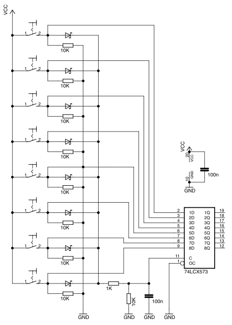 Könnte mir jemand eine Integrierte Schaltung nennen die folgendes machen kann? Beim kurz 5V Impuls auf Eingang 0, dauernd 5V auf dem Ausgang 0. Beim Kurz 5V Impuls auf Eingang 1, schaltet Ausgang 0 aus und Ausgang 1 ein und so weiter bis zu E7 A7. Es sollte also, egal ob in der Reihe nach oder nicht, für einen Impuls auf dem Eingang der dementsprechende Ausgang aktiv sein bis zu der nächste Betätigung. Zum Beispiel wenn ich mit einer von 1 bis 8 numerische Tastatur irgend eine Taste drücke der dementsprechende Ausgang soll high sein. Drücke drei sollen 5V auf Ausgang drei, und nur auf A3 permanent entstehen. Bin dankbar und offen auf alle Ideen oder Lösungen. Gruß.