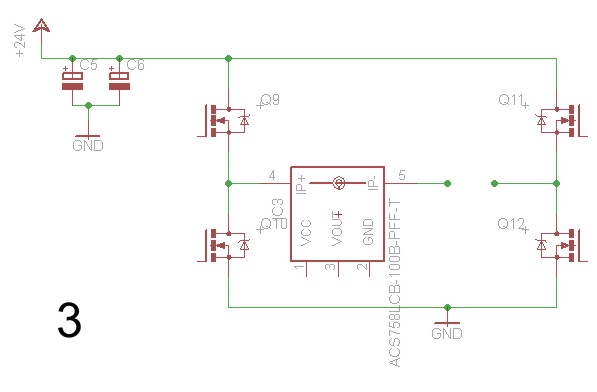 Hallo zusammen, ich werkel gerade an einer H-Brücke für einen dieser Scooter-Motore (MY1020Z, 500-600W, 36V). Die Grundlagen sind mir (weitestgehend) bekannt. In die Schaltung soll ein ACS Stromsensor mit rein, allerdings frage ich mich an welcher Stelle er am meisten Sinn macht. 1. Vor den Puffer-Elkos, mit der Konsequenz, dass ich nur den gemittelten Strom erhalte. 2. Nach den Elkos, Messung synchron zur PWM 3. An einem der Motoranschlüsse, die einzige Stelle, an der ich den realen Motorstrom messen kann. Auch dann, wenn der Motor zum Bremsen über die LS kurzgeschlossen würde. Messung ebenfalls synchron zur PWM. Als einfacher Überstromschutz reicht (1) ja aus. Inwieweit es überhaupt sinnvoll einen Stromregler auf dem uC zu implementieren? Im Anhang mal die 3 Schaltungsvarianten.