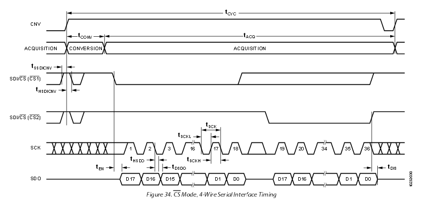 Hallo, ich habe leider einen kleinen Knoten im Hirn. Bei der ADC-Abfrage (18bit) per SPI mit dem STM32F429 habe ich etwas Probleme. Die Daten werden wie angehängt gesendet. Ich rufe die Daten per SPI_I2S_ReceiveData(SPI5) (von der STD-Lib) 8-bitweise ab. Im ersten Byte habe ich dann D17-D10, im zweiten D9-D2 und im dritten Byte habe ich dann D1-D0. Die Byte sind alle uint8_t Es gibt doch bestimmt eine einfache Variante die jetzt in eine int32_t Variable zu speichern, und dabei das Vorzeichen nicht zu verlieren, oder? Mir fällt da nur eine Variante mit viel schieben und ifs ein. Kann mir da bitte jemand auf die Sprünge helfen?