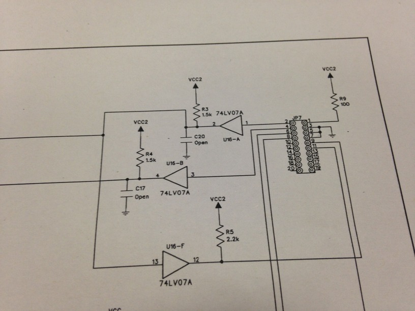 Detlef Kunz schrieb: > Nicht oder sondern und. :) Dann kläre mich doch bitte über den Denkfehler auf :) Detlef Kunz schrieb: > Den 74LV07 rausschmeißen. Die 74LV07 sind auf dem Eval Kit verbaut und ich würde nur ungern an dem Kit Veränderungen vor nehmen. Die Designer von Maxim müssen sich dabei ja auch irgend was gedacht haben.. Ich hab die Grafik des Schaltplans noch einmal an gehangen aber diesmal mit Pin Beschriftung ;)