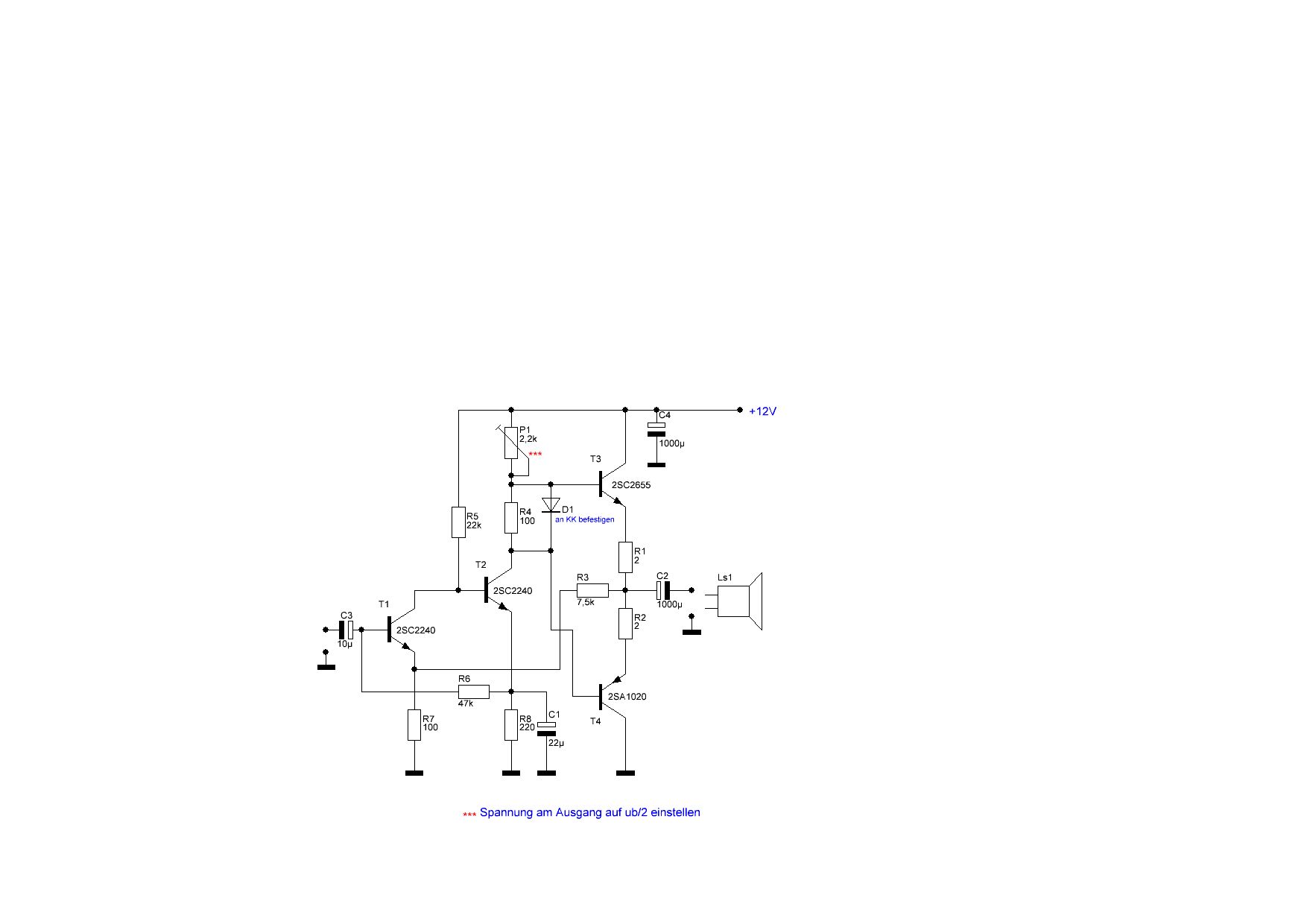 Daraus evtl. noch dieser Link: http://www.hobby-bastelecke.de/projekte/verstaerker_gegentakt.htm Damit gehts dann sicher. Nur leider auch am Thema vorbei: ist ne komplett andere Schaltung ;)