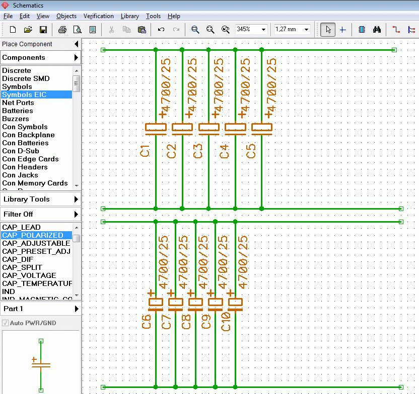 Helge A. (besupreme) schrieb: > Ich plaziere sogar im Schaltplan mehrere gleiche C's (die alle im > gleichen Netz hängen natürlich) direkt aufeinander. Dann smashen und die > Namen auseinanderziehen, damit die alle lesbar sind. Wirkt viel > übersichtlicher. Würde ich so nicht gerne machen. Kann zu Missverständnissen führen. Besser die C's wenn wirklich wenig Platz ist enger zusammenlegen oder sich mal eben neue Symbole dafür erstellen (siehe Anhang).