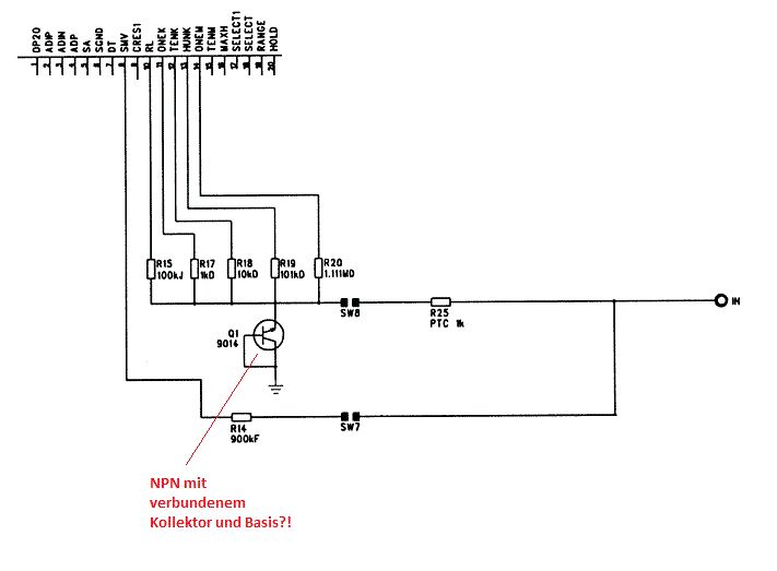 Ich sollte vllt noch dazusagen dass mot diesem schaltungszweig widerstände gemessen werden - also das Ohmmeter. Den Sinn der Z-Diode kann ich mir als Laie aber nicht erklären und auch der PTC mit 1kOhm bleibt mir rätselhaft.