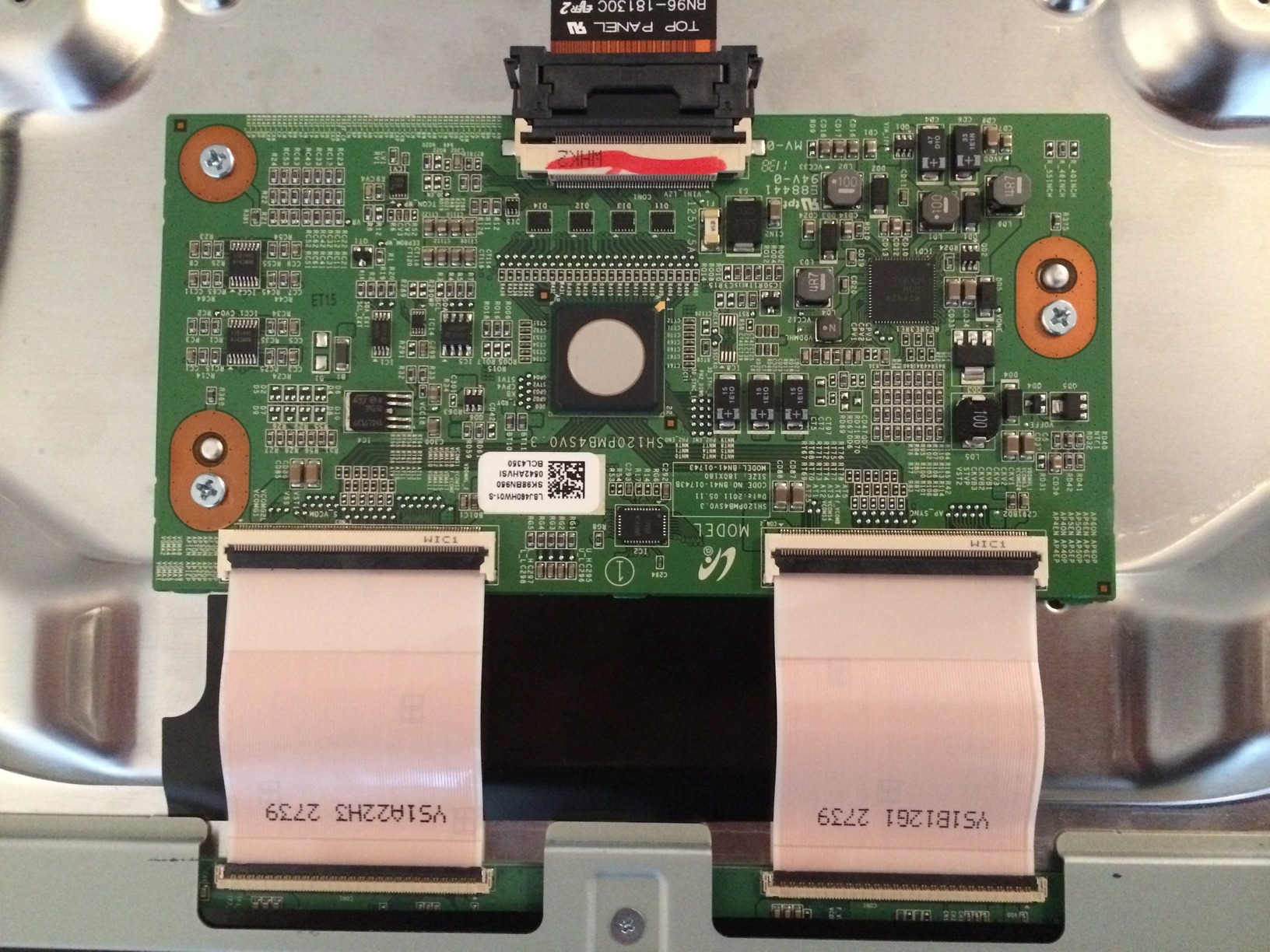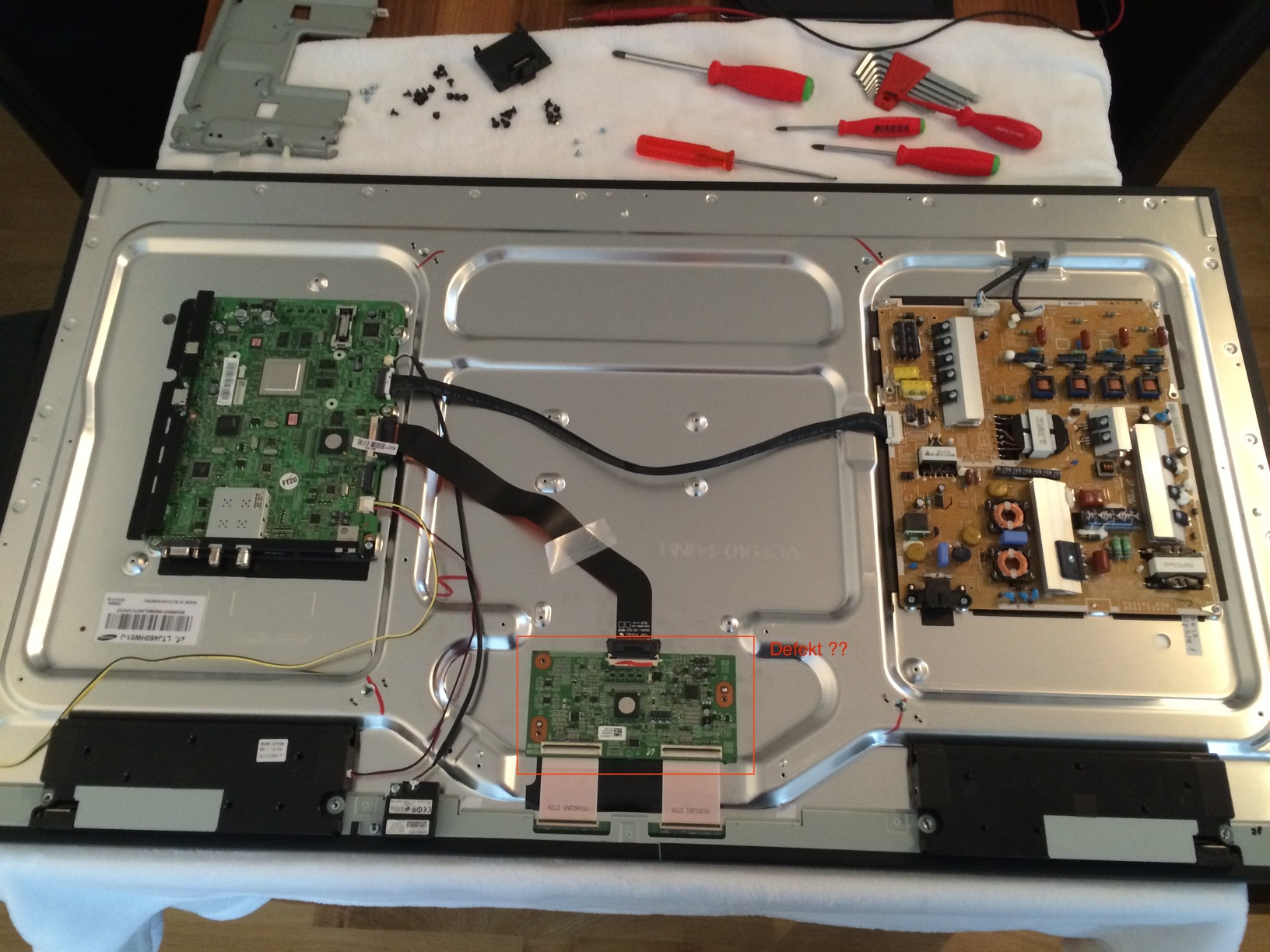 Hallo zusammen Habe einen Samsung TV ltj460hw01 der einen Bildfehler hat. Es wird jede 5. Pixelzeile nicht angezeigt. Habe das Gerät geöffnet und natürlich keinen sichtbaren Fehler entdeckt. Ich vermute dass die Displaytreiberplatine defekt ist. Anbei ein paar Bilder. Kennt jemand das Problem ? Oder hat einen ähnlichen Fehler gehabt ? Für ein paar Tips währe ich dankbar. Gruss