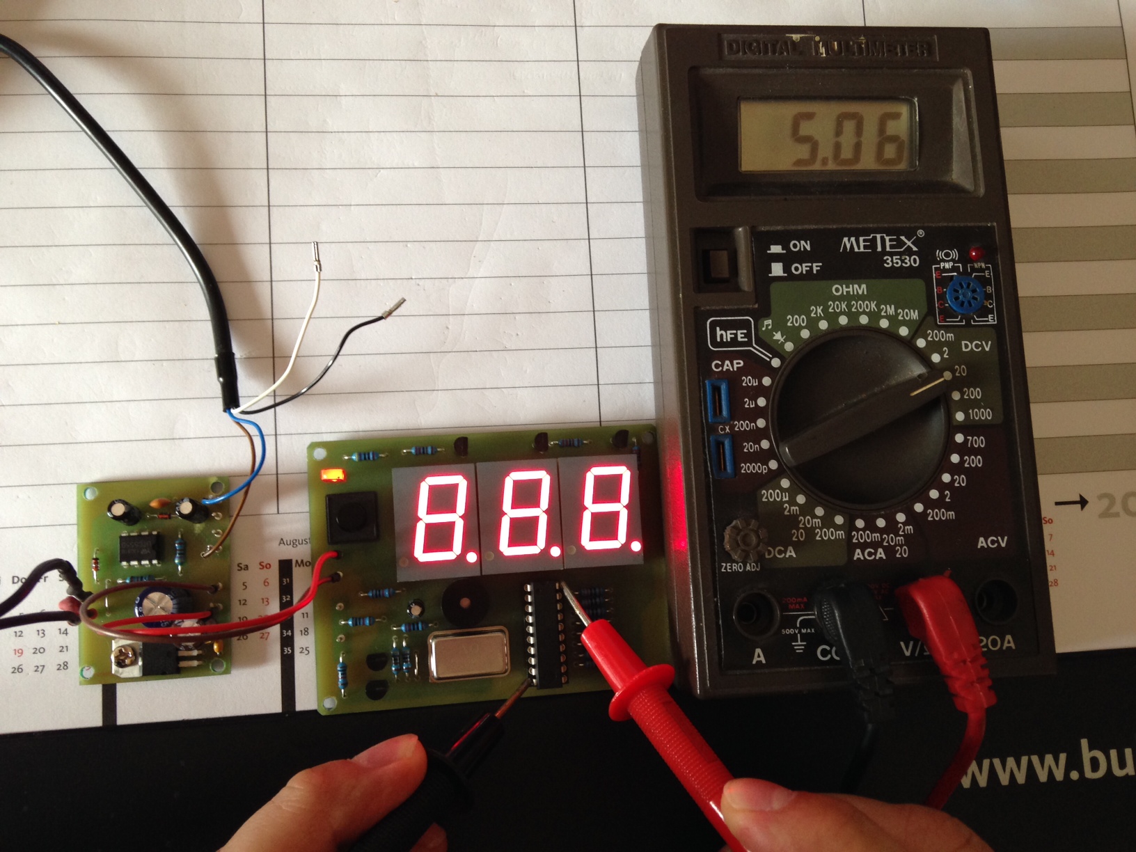 NurEinGast schrieb: > Gebhard schrieb: >> Ich denke das der µC richtig >> konfiguriert ist. > > WIE hast Du ihn konfiguriert ? Den at89c2051 habe ich mit einem Programer (http://www.andinet.de/technik/elektronik/usb_programmer/usb_programmer.php) beschrieben. Ohne Fehlermeldungen. Das Programm liegt als HEX vor. Den Sourcecode kannst Du unter (http://www.klaus-leidinger.de/mp/RC-Elektronik/Tester/Tacho/tacho.asm) nachlesen. Und so habe ich den µC lt. Anleitung konfiguriert. Wenn ich nun Spannung an die Schaltung lege leuchten alle 7 Segment Anzeigen und der Summer Summt. Mehr tut sich nicht. Gruß Gebhard