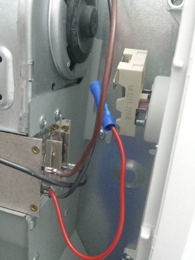 Theoretisch ist das in Ordnung. Der Elektriker hat immerhin nicht den Übertemperaturschutz überbrückt, der auf den Glimmerplatinen sitzen wird. Das rote Kabel wird nach dem Umbau einfach ungenutzt sein und er hat mit der Presshülse das Ende isoliert. Praktisch ist der Heizlüfter bedenklich: In einem Wärmegerät nur PVC Leitung die bis 85 GradC spezifiziert ist, ist etwas wenig, selbst mit 80 GradC Übertemperaturschutz ist nicht gewährleistet, daß es nicht zu Stauwärme kommt. Besser würde mir das Gerät mit Silikonleitung (oder zumindest Silikonschlauchummantelung) oder Glasgewebeisolation gefallen, aber da kann der Elektriker nichts für. Er glaubt halt der Konformitätserklärung des Herstellers.