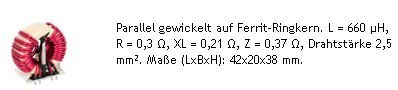 @ Ludwig S. (Gast) >kurze Frage: kann ich eine von beiden oder beide von diesen Drosseln >als Entstördrossel in der Netzzuleitung verwenden ? Du MUSST beide nehmen, denn es ist eine stromkompensierte Gleichtaktdrossel. Wenn man die einzen als normale Drossel nutzt, ist die Induktivität praktisch nicht vorhanden, weil das Ding im Gegentaktbetieb bei wenigen mA in die Sättigung geht.