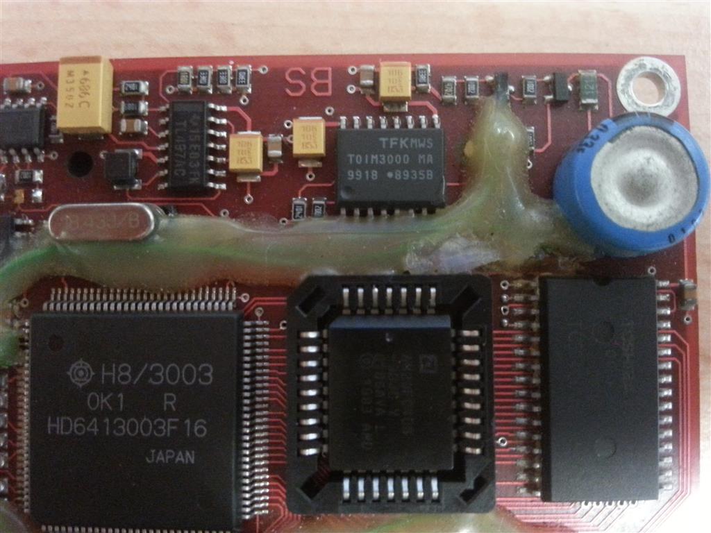 hallo, habe hier eine Heizungssteuerung in Händen, welche über die Sommermonate Parameter vergessen hat (war stromlos) Den Hersteller der Steuerung gibts nicht mehr. Es werkelt ein H8/3003 der laut Datebnlatt kein EEprom hat. Daneben ist ein SRAM (TC554001AF) mit Goldko (0.33F) gepuffert Was meint Ihr, sind die Parameter dort drinnen oder in dem mir unbekannten Bauteil T01M3000 von TFK (eventuell ja ein EEprom?) daneben. Kennt jemand die Funktion dieses IC? Auf der Platine befindet sich auch ein Flash (AM29F04) LG Peter