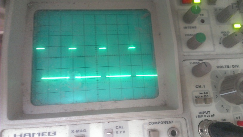 Route 66 schrieb: > Hallo! > Sieht aus wie Jitter durch Brummmodulation ö.Ä. In der Tat! Fensterbrett zu Masse im Oszi und die Netzspannung kommt zum Vorschein. Kabel von Heizung auf Fensterbrett und das Signal am Giesomat sieht wieder eckig aus! Hat jemand ne Idee, wie man ohne Erdung des Fensterbrettes (Blechding) vielleicht die Schaltung vom Giessomat ändern kann damit die Brummerei keinen Einfluss hat?