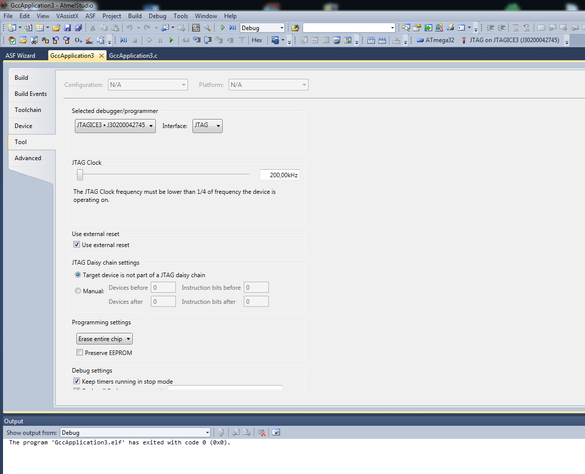 hast du teamviewer oder skype?:) ich kann die register nicht lesen mit dem jtag ice 3 ISP geht genauso wenig... die boards funktionieren mit dem alten JTAG ice adapter. also muss es irgendwo an den einstellungen hängen oder ein treiber problem. hardware schließ ich mal aus.