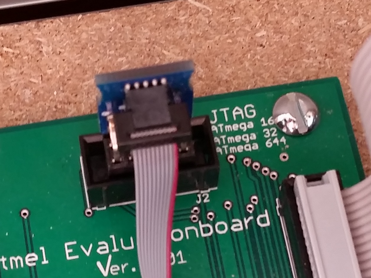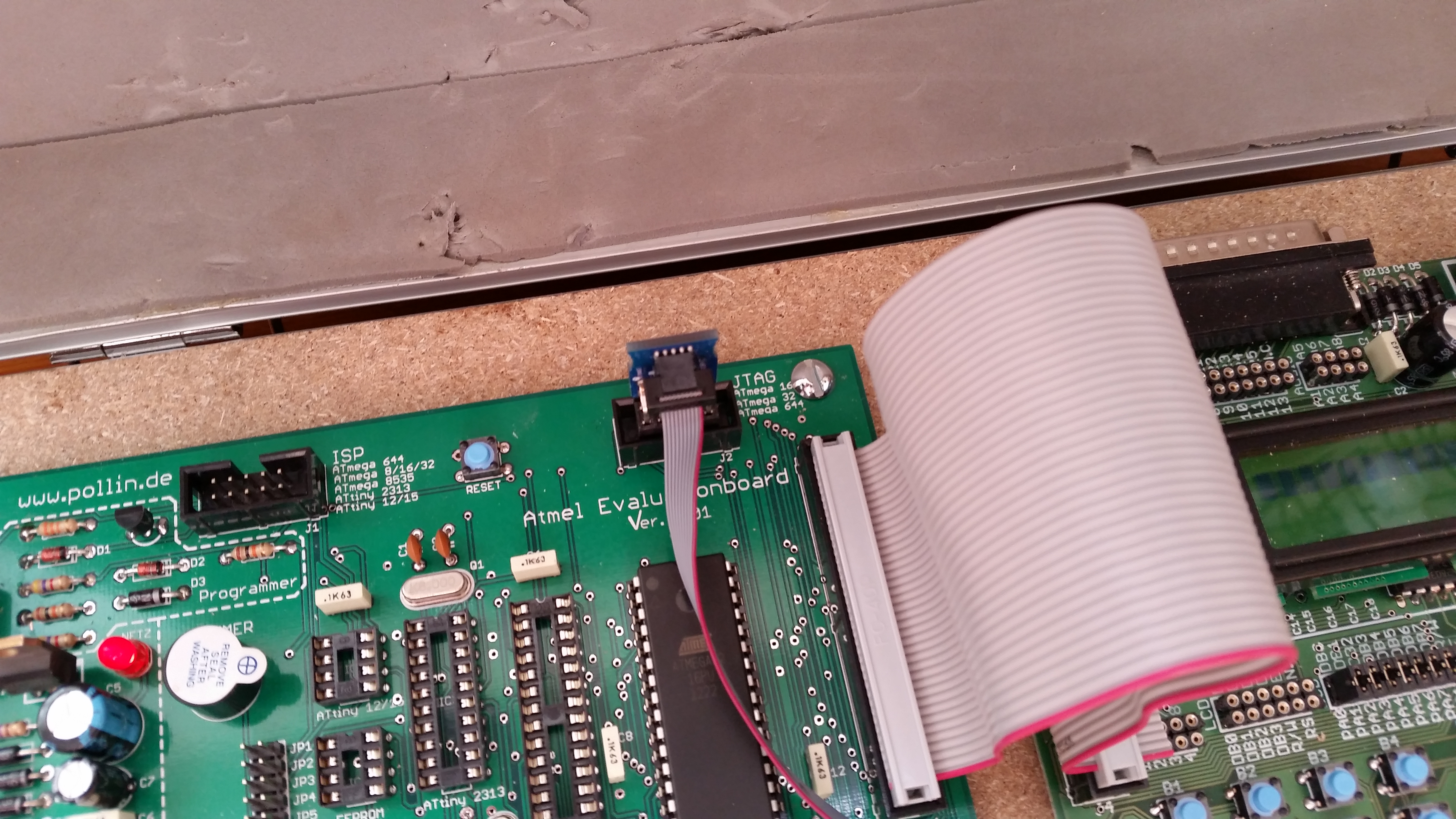 Ok, dann nicht drehen. Sah auf dem Foto so aus. :-( Wie sieht das aus, wenn der Controller über ISP angesprochen wird? Ist vielleicht die JTAG-Fuse abgeschaltet?