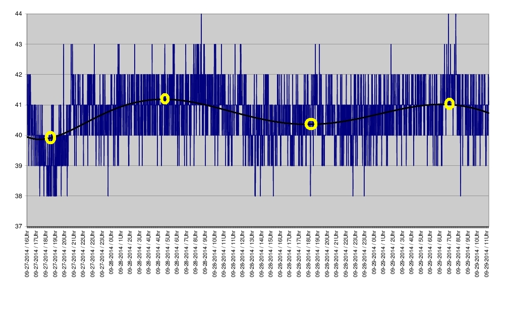 Wenn du bei der Y-Achse Einflüsse der Mondanziehung festgestellt haben willst, warum zeigst du dann den Verlauf für die Z-Achse?
