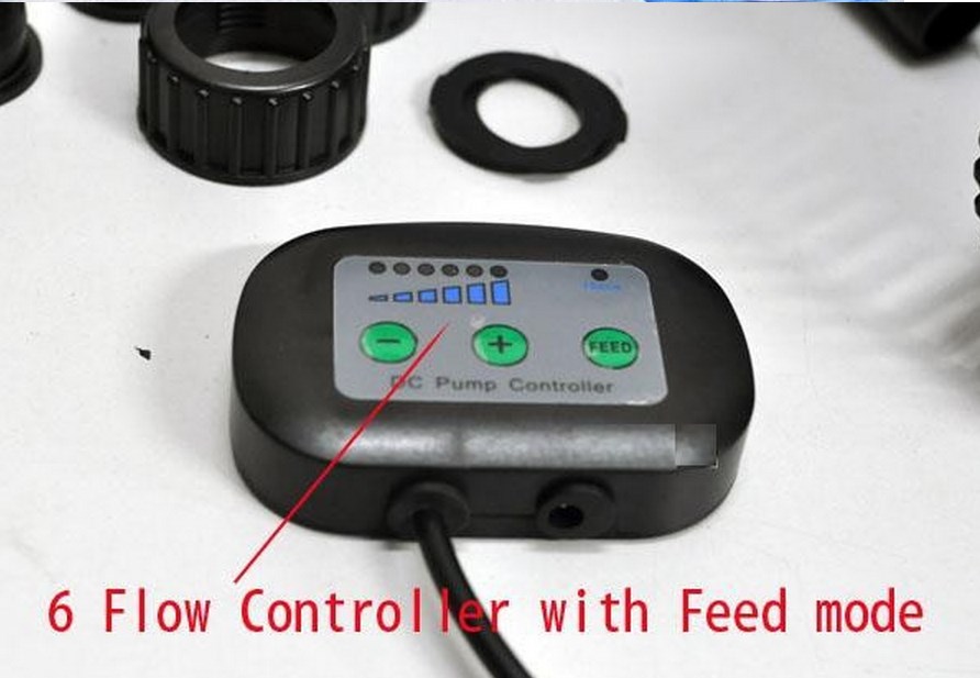 Hallo Thomas, lebe in Basel .... aber hattest recht, die Chinesen sind sehr fix im Anworten (könnte sich hier mancher ne Scheibe abschneiden). Musste keine viertel Stunde auf die Antwort warten. Du hattest auch damit recht, dass die Pupe nicht wirklich Drehzahlgeregelt ist. Sondern wie Du sagtest, verschiedene Pumpen mit verschiedenen Speeds. Die Benennung im Titel (Pump Variable Speed) ist aber bei effektiv regelbaren DC Pumpen genau die selbe wie bei der besagten AC Pumpe. Habe jetzt die Bestellung von der DC10000 auf die regelbare DC9000 gewechselt. Hier habe ich schon mal grundsätzlich eine Drehzahlregelung und denke mir (hoffe ich), dass man diese DC Pumpen, respektive die Controller (Bild) einfacher meinem Vorhaben anpassen kann. Ich kenne eben diese Pumpen, hab sie mal in Betrieb gesehen. Sie sind trotz der Leistung wirklich extrem leise und vom Preis her (die geregelte DC9000, 9000 l/h mit 4 m Förderhöhe ... 87 US$) Wie man auf dem Bild sieht, ist die Drehzahlregelung in 6 Stufen ... Was ich mir jetzt vorstelle ist, dass man die Steigerung und das Abfallen der Drehzahl mit einer Zeitschaltung des Controllers erweitern könnte, indem man anstelle des drücken der Tasten, jeweils einen Impuls auf deren Kontakte sendet. Gruss, Kurt