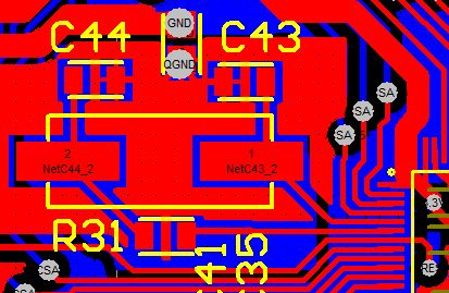 Ich geb' mal ein Beispiel, wie es bei mir ausschaut. Claudio H. schrieb: > Aber die Boards sind ja für die Community. Du kannst ja auch welche > haben :) Wie ich weiter oben schon erwaehnte, in dieser Form kann ich mit dem Board nichts anfangen. Meines müsste viel puritanischer sein. Edit: R5 ist die Brücke zwischen C43 und C44