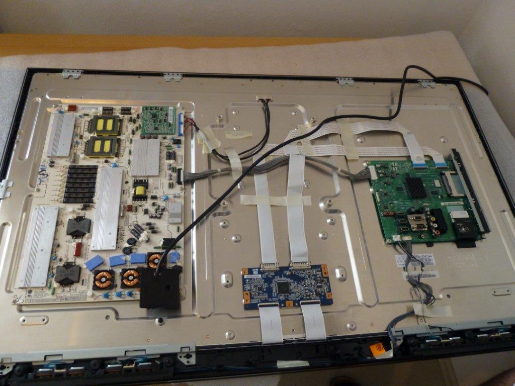 Hi, ich habe gerade ein unschönes Problem mit einem LG-TV Jahrgang 2010. Siehe http://youtu.be/3qcrO1guYjo (ist wirklich direkt das Problemkind) Der Fehler ist da, auch wenn ich ALLE externe Quellen abgestöpselt habe und nur das OSD "Input-Select" Aufrufe. (also kein Problem vom externen Eeceiver etc.) Nun habe ich einiges darüber gelesen und auch die Rückplatte entfernt, werde nicht so richtig schlau aus dem ganzen. (Bilder im Anhang) Verstanden habe ich soweit, dass das sogenannte T-Con == Timing Controller Board wohl die digitalen Signale in Zeilen umwandelt. Dieses ist bei mir mit zwei "Ribbons" mit dem LCD verbunden, weil es sich wohl um ein zweigeteiltes handelt. Das vertauschen dieser beiden Kabel brauchte mir nicht wirklich eine Einsicht (evtl. sogar schädlich??) Da der TV 400€ damals gekostet hat, hätte ich gerne eine Einschätzung/Tipps von euch, wie ich feststellen kann, ob es wirklich das T-Con-Board ist (75€ Ersatz), oder doch direkt das LCD. Ein Ersatzgerät in der Bucht zu ersteigern, um damit einfach etwas zu testen ist mir bislang nicht gelungen. Folgende beiden Videos sind zwar auch sehr interessant, aber die Quintessenz konnte ich nicht wirklich verstehen. Also wann was defekt sein soll. 98% immer das Display und nicht das T-Con? https://www.youtube.com/watch?v=GcBwTums_mI https://www.youtube.com/watch?v=mpp14G-c9Yo Und diese lustigen Streifen an den Seiten konnte ich bei unserem auch noch nicht entdecken. Kann mir Jemand sagen, wie ich da ran komme, um lustig drauf "rum zu drücken"? Grüße Oekel