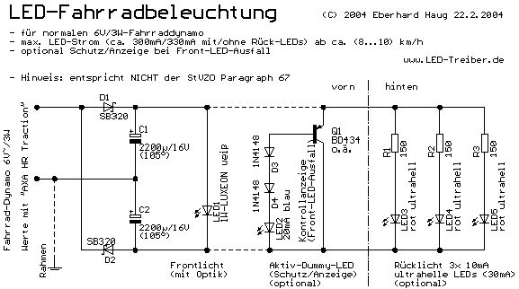 > Wir dagegen wollen von den verfügbaren 3 Watt möglichst viel an den Akku > und Verbraucher übertragen. Mit 50% geben wir uns nicht zufrieden. Nochmal, zum Mitschreiben ! Es sind durchaus MEHR als 3 Watt verfügbar, auch wenn man nicht mit 50 km/h fährt: Wenn man einen grösseren Lastwiderstand als die 12 Ohm der Standard-Beleuchtung anschliesst und/oder die Streuinduktivität des Dynmamos (wenigstens teilweise) kompensiert.