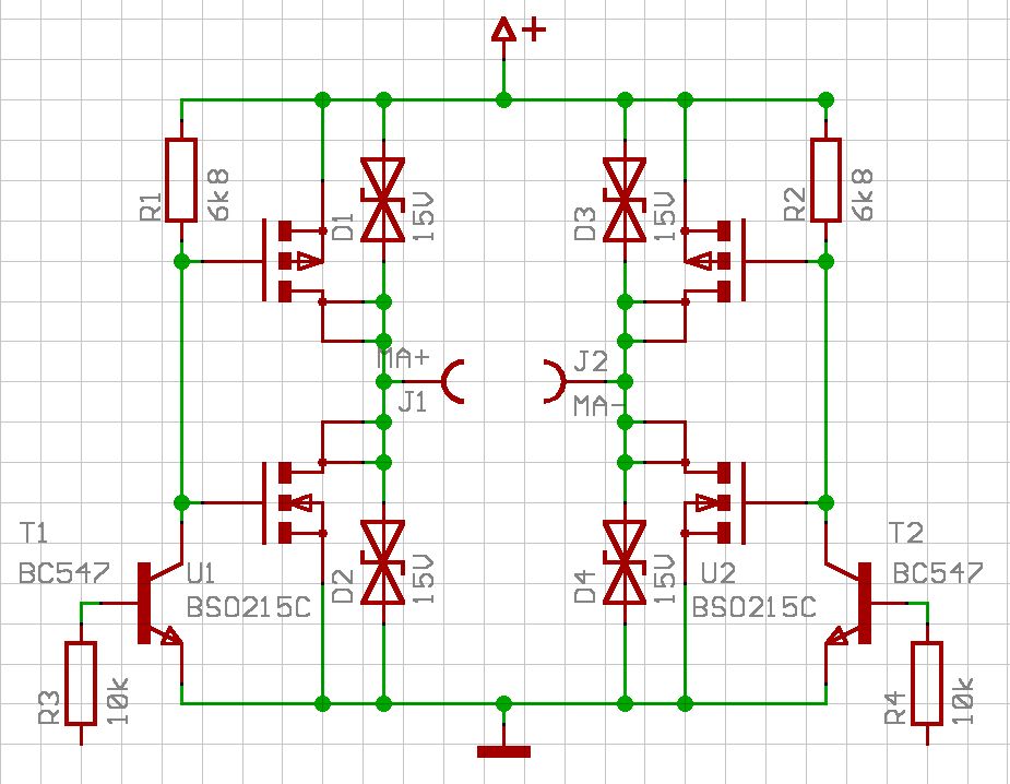 Krass was noch alles fehlt. Schon jetzt danke für die große Hilfe!! Da ich den Motor ja in beide Richtungen laufen lassen will, bräuchte ich theoretisch 2 Freilaufdioden. Für jede Richtung 1. Zwei Dioden aber gegengleich angeschlossen ergeben zu 100% einen Kurzen. Wie muss ich die dann anschließen? Nur eine in die bevorzugte Richtung? Jedoch lese ich aus deinem Kontakt, dass es mehrere sind ... Ich hab gerade (zugegeben nur kurz) nach einem Widerstand mit 330 milli Ohm gesucht (ich hoffe auf maximal 1/2 A, wird aber noch ausgemessen) und keinen gefunden. Nur Widerstandsdrähte. Wird damit der Widerstand generiert? Auch auf der Platine? Für die Totzeit werde ich definitiv extra Abfragen etc in die Software einbauen. Danke für den Hinweis. Nochmals vielen Dank für die sofortige andauernde Hilfe. Einfach ein super Forum, in dem ich gerne viel Zeit mit Lesen (und jetzt auch mal selber kreieren) verbringe! Für heute Abend ist erstmal Feierabend bei mir. Morgen geht es hoffentlich weiter. Deswegen nochmal mein überarbeiteter Schaltplan