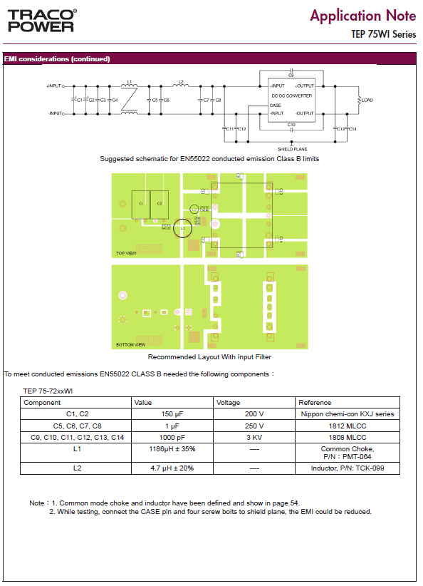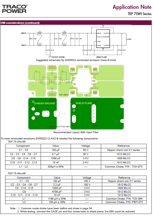 Guten Abend, ich möchte in Kürze einige 75 W DC-DC Wandler von Traco verbauen (TEP 75WI Serie). Da diese in einer Laborumgebung eingesetzt werden sollen, ist EMV ein großes Thema. Ich hatte schon früher mit TRACOs zu tun, allerdings sind die im Datenblatt dieser DC-DC-Wandler vorgeschlagenen passiven Filter nach EN55022 Klasse B recht komplex. Dazu möchte ich auf den Anhang zu diesem Beitrag verweisen. Umsetzbar wäre das natürlich. Ich habe mich jedoch gefragt, ob das nicht auch etwas eleganter geht. Dabei bin ich auf aktive EMI-Filter von Picor gestoßen. Genauer gesagt, den QPI-5. Das scheint mir den Aufwand dramatisch zu reduzieren. Wäre das eine empfehlenswerte Alternative? Mit besten Grüßen Hans-Jürgen