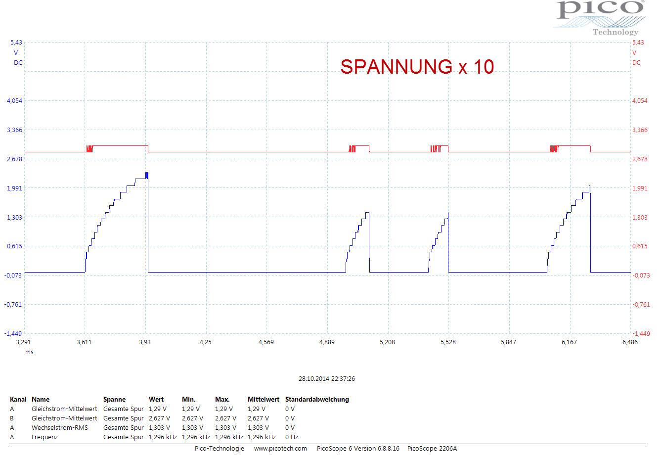 zu hohen kapaziiven Last aus. Das rote ist wohl ursprünglich verrauscht,