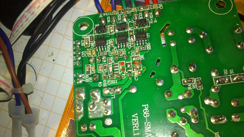 AS schrieb: > Und wie krieg ich das wohl am besten gemessen, ohne sie > auszubauen? Vermutlich durch Anfassen. Wenn ein Transistor nicht mehr richtig durchschaltet, müsste die Verlustleistung irgendwo bleiben, und das wäre im Transistor ( vermutlich ein MOSFet, dieser U7), der dann heiss wird. Wenn du mal ein besseres Foto der drei Endstufen machst (von oben, nah dran und trotzdem scharf) dann kann man vermutlich noch mehr sagen. Interessant sind auch die Bezeichnungen von z.B. U7 und D6, die da die Rot Endstufe bilden.