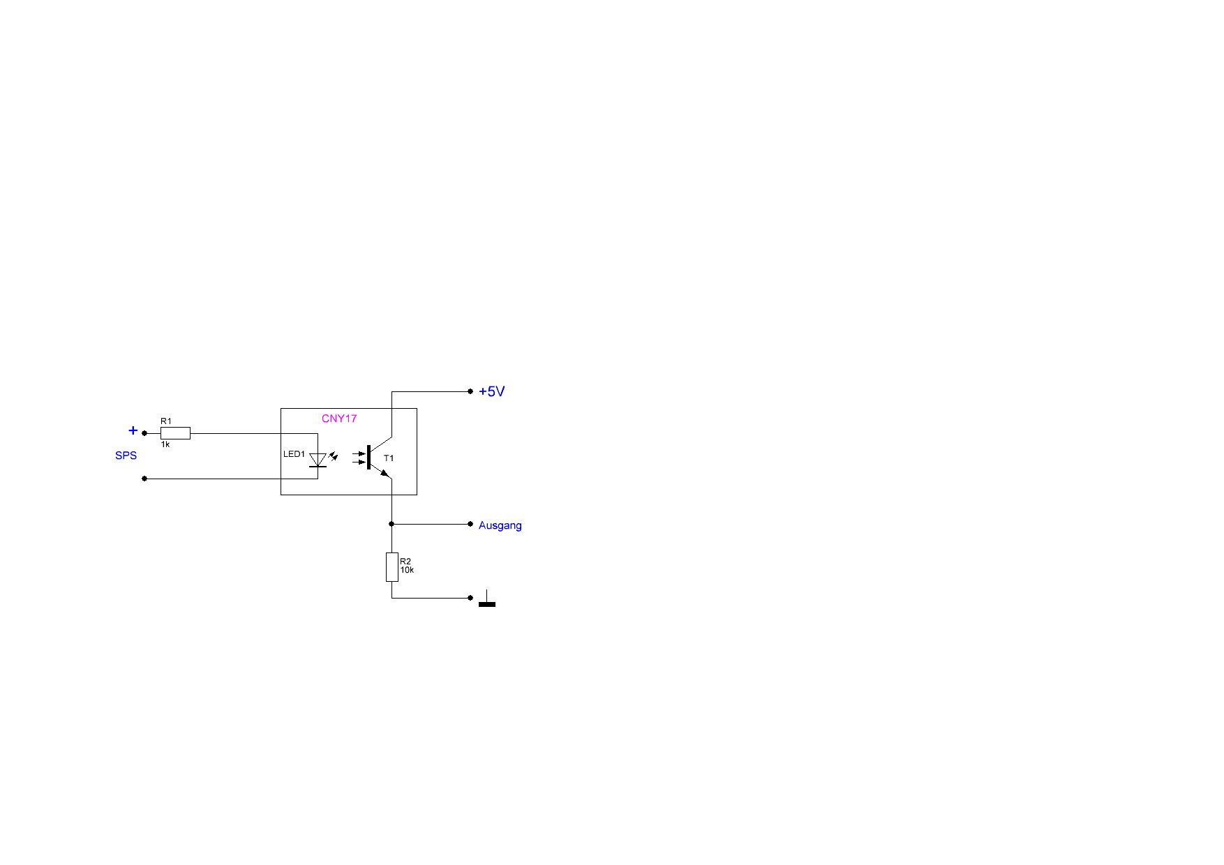 Sebastian Kohler schrieb: > Ich bin mometan eine Lösung am finden um von einem 24V > SPS-Ausgangssignal ein 5V Signal zu bekommen. optokoppler. der 4n28 ist ne "taube nuss". cny17 -2 oder -3 da brauchst sehr wenig led strom. welchen strom benötigen die 5v eingänge? pollin hat da einiges an optokopplern. den cny17 hatte ich schon mal verbaut. schaltplan ist von der µsps. funktioniert ohne probleme. r1 und r2 sind eventuell anzupassen.