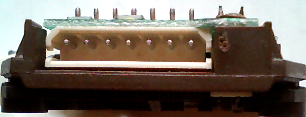 hallo, ich habe genau den selben motor in meiner bastelkiste. nach ein paar experimenten bin auf folgendes ergebnis gekommen. ausgehend von der 7 poligen steckerleiste ist die belegung so (Pin 1 wäre auf encoder-2.png ganz rechts): Pin1: Versorgungsspannung ( ich hab 5V genommen) Pin2: Referenzspannung ( bei mir so ca. 2,4V, einfach mit nem poti einstellen) Pin3: nicht angeschlossen Pin4: Phase A Pin5: Phase Z Pin6: Ground 0V Pin7: Phase B mit der referenzspannung musst du etwas probieren. ist sie zu hoch, sind die ausgänge dauerhaft low, ist sie zu niedrig sind die ausgänge immer high (bei mir ca. 3.7V). Zum einstellen habe ich ein 2,2k poti an pin1 und pin6 gehangen, den mittelabgriff auf pin2. ich hoffe damit kommst du weiter. zu dem ic selbst hab ich auch nix gefunden. ps: hast du noch mehr von diesen Motoren? MfG CrazyHungar