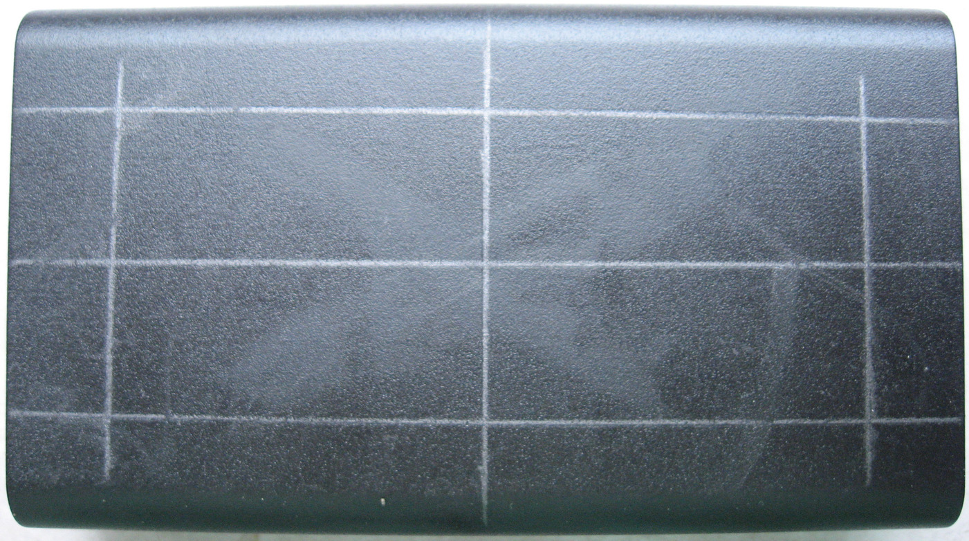 Bearbeiten des oberen Halbschalengehäuses Zuerst eine kleine Korrektur zur Flachbandleitung. Von dieser 26poligen Leitung sollten erstmal 200mm abgeschnitten werden, dann als 16polig die Adern abtrennen und auf ca. 170mm für das LCD kürzen. Denn die übrigen zehn Adern mit 200mm werden noch für den Taster und den LCD-Beleuchtungsschalter Verwendung finden. Beide Halbschalengehäuse zusammenstecken ( darfür muss natürlich die Platine raus ). Nun auf der oberen Halbschale die Aussparungsbreite der Sub-D-Buchse von der unteren Halbschale übernehmen bzw. markieren. An der Sub-D-Buchsenseitenwand von der oberen Kante 4mm entfernt eine waagerechte Linie ziehen und wie bei der unteren Halbschalenhälftenbeschreibung senkrecht bis zu dieser einsägen usw. Lieber weniger, dann kann mit der Feile genauer die Breite nachgearbeitet werden. Jetzt mit hilfe von drei Platinenstückchen die Bohrung für den Taster markieren und " körnen " ( siehe Foto ). Diese sollten so lang sein, das sie an zwei von den inneren Stegen angelegt werden können. Dazu jeweils alle drei zusammen an die Seitenwand anlegen, um das Bohrungskreuz zu erhalten. Unbedingt darauf achten das die richtige Ecke genommen wird. Das bedeutet, wenn die Halbschalennase unten liegt ist die Körnung oben rechts. Bohren würde ich jetzt noch nicht. Die Halbschale mit einem Mittelkreuz versehen ( jeweils mitte von Länge und Breite mit einem Bleistift ) und von dort aus die Maße vom LCD-Rahmen übernehmen ( siehe Foto ). Lieber ein paar zehntel zu wenig, da sowieso mit der Feile nachgearbtet werden muss. Diese Aussparrung am Besten wieder mit der Proxxon wie vorher bei der unteren Halbschale beschrieben bearbeiten. Nun das 4mm Loch für den Taster bohren und diesen so ausgerichtet mit Heißkleber festmachen, das die nach innen gebogenen Beinchen parallel zur Längsseite des Gehäuses verlaufen. Auf der anderen Seite zusehen, das die Tasterbetätigung einigermaßen mittig im Loch ist. Die Beinchen verzinnen und jeweils zwei verdrillte Flachbandleitungen daran anlöten ( siehe Foto ). Das LCD so einbauen, das die *Brücke an der " Nasenseite "* ist. Eventuell das Geäuse auf die Unterlage drücken, so das das LCD eine Ebene mit dem Gehäuse ergibt und dieses dann an den schmalen Seiten, so wie auch das Tasterkabel mit Heißkleber befestigen ( siehe Foto ). Das Tasterloch habe ich mit einem Silikontropfen zugemacht und diese Betätigungsart funktioniert einwandfrei. Es sieht nicht schön aus, aber mit Übung könnte man vielleicht ein schöneren " Nippel " erzeugen. Schwarzes Silikon gibt es ja. Bernd_Stein