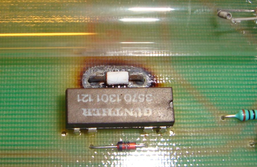 Oh, dieses Qualitätsprodukt aus dem Hause Isel habe ich auch noch. Gerade mal 'reingesehen, die Gegend um die Diode sieht ... interessant aus. Das scheint mir ein Designfehler zu sein, gut zu wissen, was das für eine Diode sein soll (meine sieht zwar noch nicht nach weißer Asche aus, aber eine lesbare Beschriftung ist auch nicht mehr da).