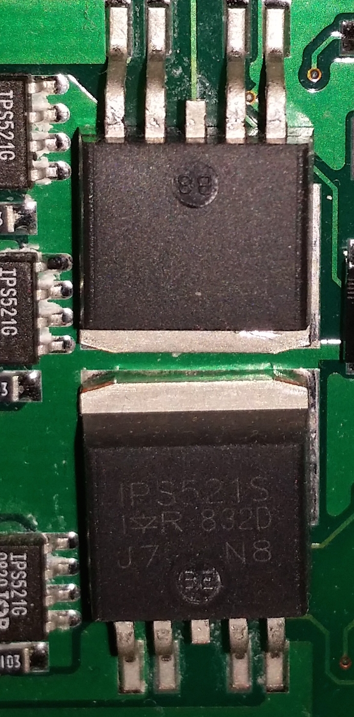 Originalteil ist von International Rectifiers. http://www.irf.com/product-info/datasheets/data/ips521.pdf Ist wohl schon älter, die gängigen Distributoren haben keine im Lager. Auf die Schnelle spuckt das Internet folgenden Ersatztypen aus: VN750 (z.B. bei Farnell) http://www.farnell.com/datasheets/1761369.pdf Musst auf jeden Fall erstmal die Datenblätter vergleichen, ob das auch hinhaut!!!
