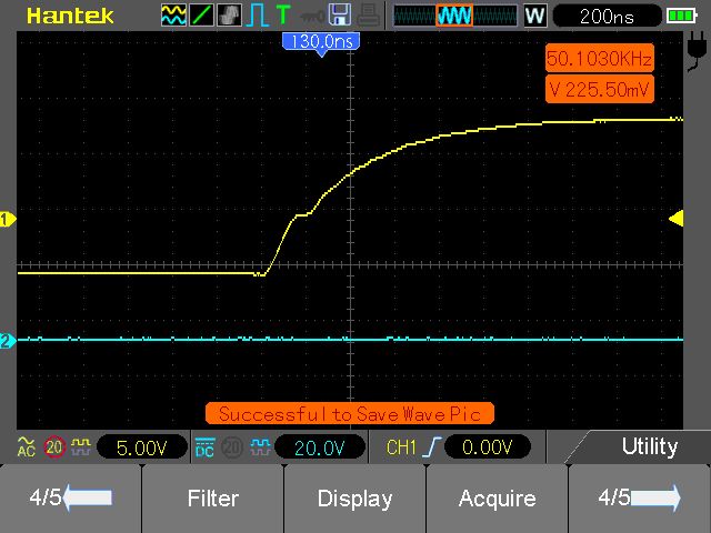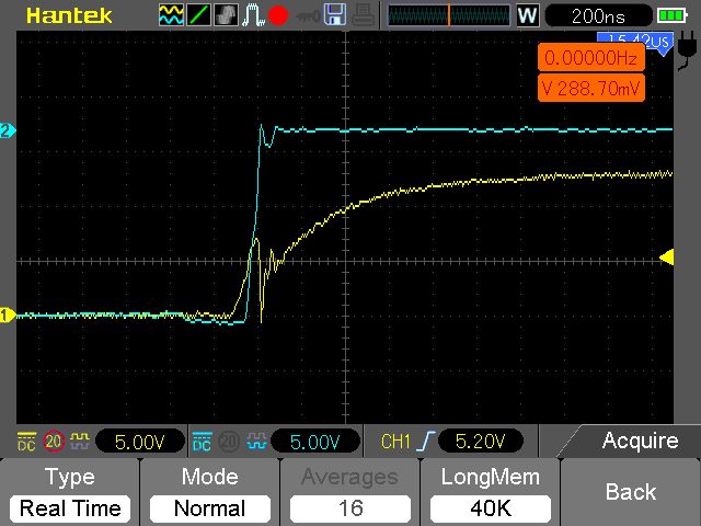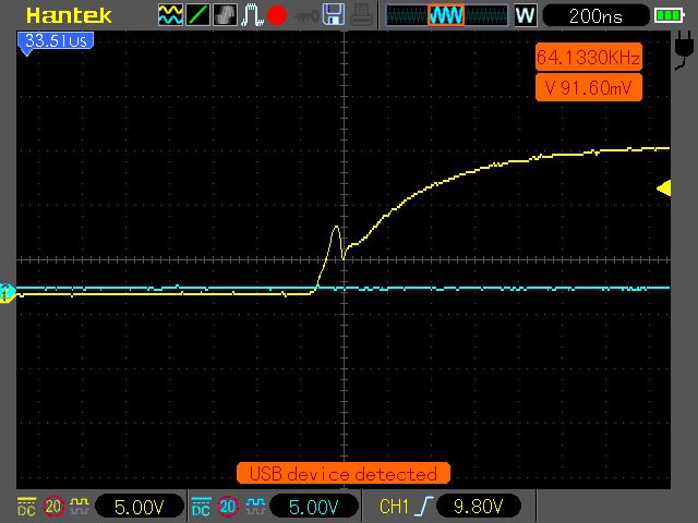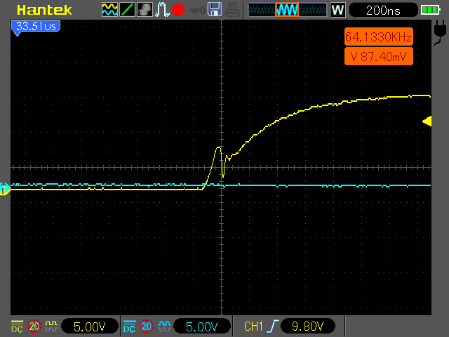 nur ganz kurz ..weil auf besuch... hatte noch spasshalber aus intetesse probiert mit gatewiderstand 280 ohm... klar sinnnlos... ewiglanger anstieg.. aber genau selbes verhalten. mit kurzem harten einbruch... 1:1 mit 25ohm... langsam glaub ich da spielt noch was anderes mit