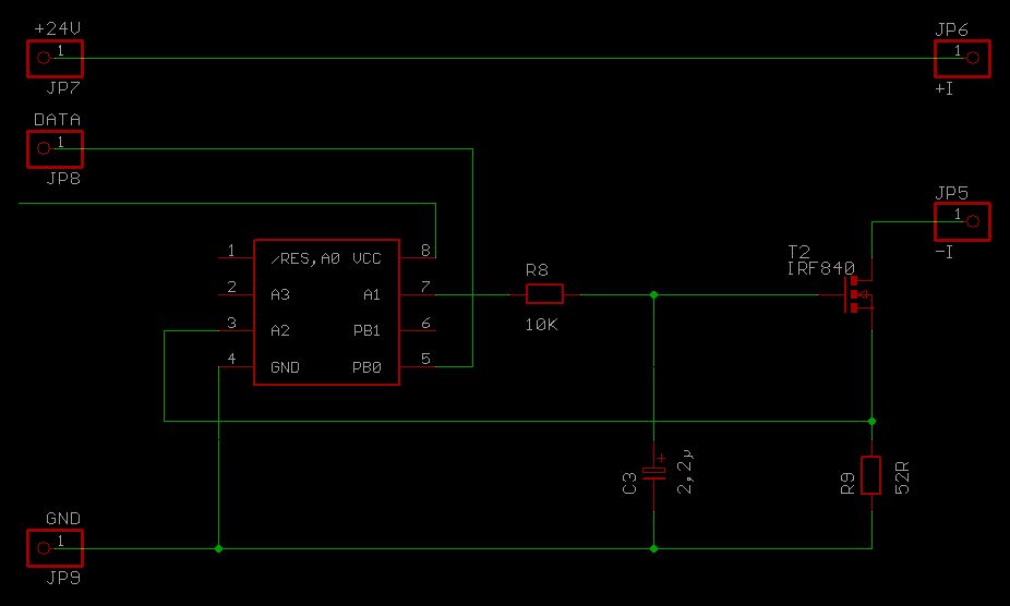 Hallo in einem anderen Beitrag hatte ich ja schon mal verschiedene Möglichkeiten einer galvanisch getrennten 0-20mA Stromschleife erfragt bzw. mit euch diskutiert. Jetzt kommt eine vollkommen andere Herangehensweise! Ein Tiny erzeugt ein PWM Signal das durch ein RC Glied gesiebt wird. umbelastet kann ich Spannungen zwischen 0 - 4,8V erzeugen. Die Spannung gebe ich nun auf ein Gate vom Mosfet und messe am Sourcewiderstand die abfallende Spannung. Diese gebe ich auf den AD Eingang vom Tiny und kann so eine Regelung aufbauen. Das ganze funktioniert sogar auf Anhieb, aber: Der Mosfet fängt erst bei 2,37V an zu leiten und bei 4,5V am Gate habe ich schon die 20mA erreicht. Darunter leidet nun meine Auflösung vom PWM signal, weil ich nicht mehr den gesamten Bereich nutzen kann. Jetzt wäre meine Frage: Wie kann ich eine Gatevorspannung erzeugen? Theorethisch wäre das ja ein SPannungsteiler, aber dann weiß ich nicht, wie ich die Spannungen aus dem Spannungsteiler und dem RC Glied addieren soll. Einen OP möchte ich aber nicht einsetzen. Geht das auch anders?