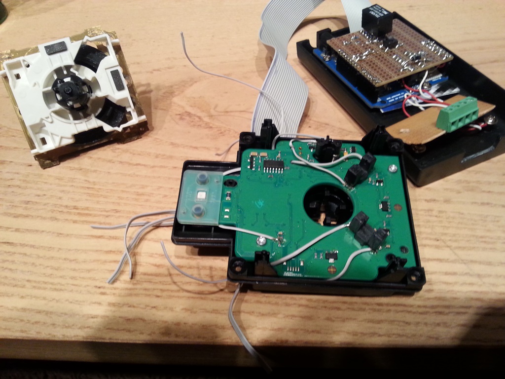 Hallo, ich bastele gerade an einem defekten iDrive Controller der (vermutlich) ersten Generation rum. Ziel ist es, alle Bedienfunktionen (Menü-Taste, Dreh-Drück-Steller [drehen li/re, drücken], "Schieben" des Dreh-Drück-Stellers in 4 Richtungen) auf Tastaturbefehle ummünzen (Arduino Leonardo) und damit eine Android TV-Box bedienen. Die Befehle Menü, Drücken und Drehen sind kein Problem, da recht simpel mit Lichtschranken bzw. einfachem Taster gelöst. Das wirkliche Problem sind die Magnetsensoren auf dem Controllerboard. Auf den beiden Sensoren steht folgendes 700 K und G 304. Damit kann Google erstmal nix anfangen. Ich habe aber bauähnliche Sensoren von Honeywell gefunden (SS40A/SS50AT Serie) -> http://sensing.honeywell.com/honeywell-sensing-magnetic-sensor-ic-line-card-005929-6-de.pdf Allerdings weiß ich nicht, ob meine Sensoren auch so angeschlossen werden. Auch die Funktionsweise ist mir nicht klar, da ja mit jedem Sensor zwei Richtungen realisiert wurden. Der Weg in beide Richtungen ist mit ca. +- 1,5 mm recht klein. Da mir nicht bekannt ist, was am Controller kaputt war, kann ich nicht überprüfen wo welche Spannung angelegt werden muss. Es befindet sich ein 5V Spannungswandler auf der Platine, aber dieser gibt bei Anschluss von 12V am original Stecker nix raus. Evtl ist der auch kaputt. Was kein Problem darstellt, da ich die vom Arduino nehme. Könnt ihr was mit der Bezeichnung auf dem Sensor anfangen? Beste Grüße aus Rodgau Andreas
