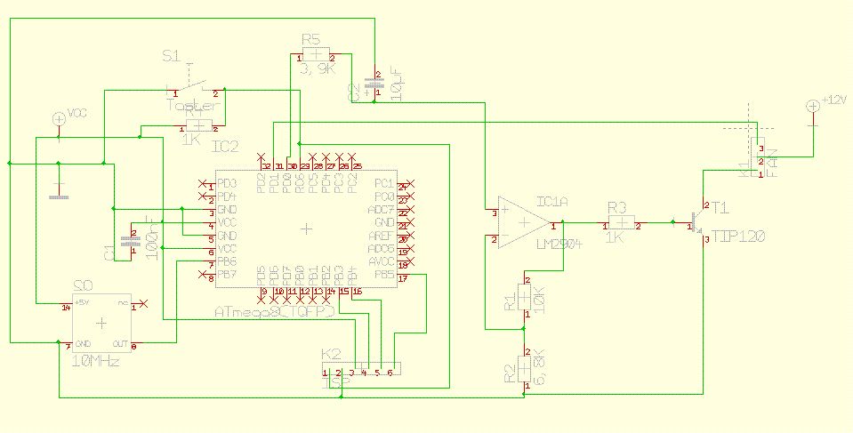 Ich wollte entweder einen DA-Wandler nehmen bzw. mit nem R und C das PWM-Signal in ne Gleichspannung umwandeln. Hab ich wohl etwas falsch geschrieben, sorry! Im Anhang hab ich jetzt kurz gezeichnet wie ich das ganze aufbauen will. Ich hab dafür einen LM2902N als LM2904 umgelabelt. Aber sonst dürfte alles passen. Der OP wird später mit 12V aus dem PC-Netzteil gespeißt. Der µC von der internen 5V Leitung. Vielleicht sind noch Fehler drin, bitte schaut euch das mal an, danke! MfG Basti